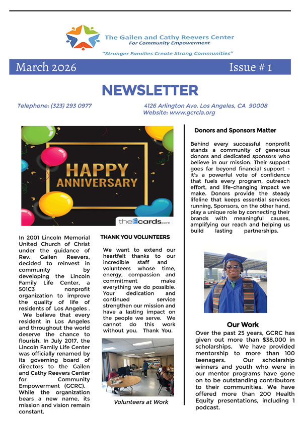The Gailen & Cathy Reevers Center for Community Empowerment is actively seeking community members, business professionals and philanthropists to provide strategic leadership and resources to support GCRC’s effective operations and viability to empower.